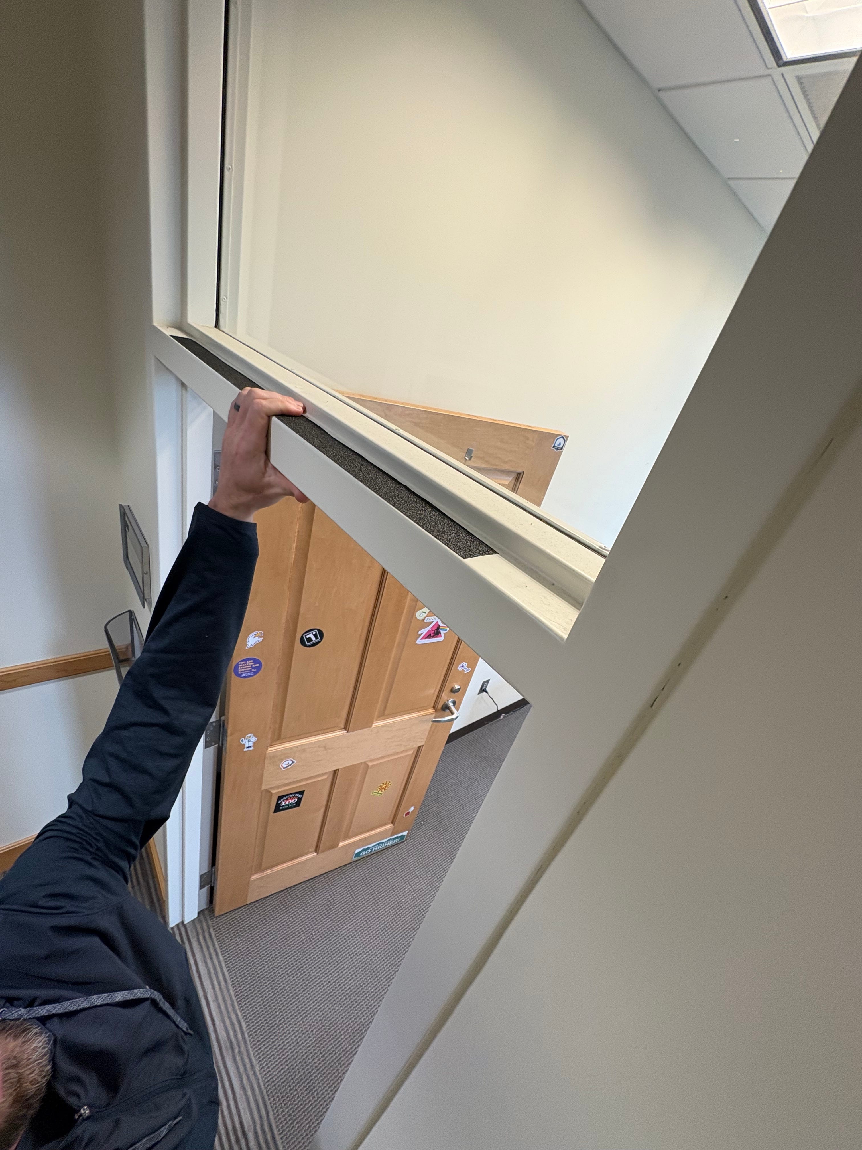 To enter my office, aka my work shed, I must do a pullup using the 2-inch edge on top of the door jam. I even installed some grip tape to season the skin and sand off excuses about sweaty hands or slick paint.